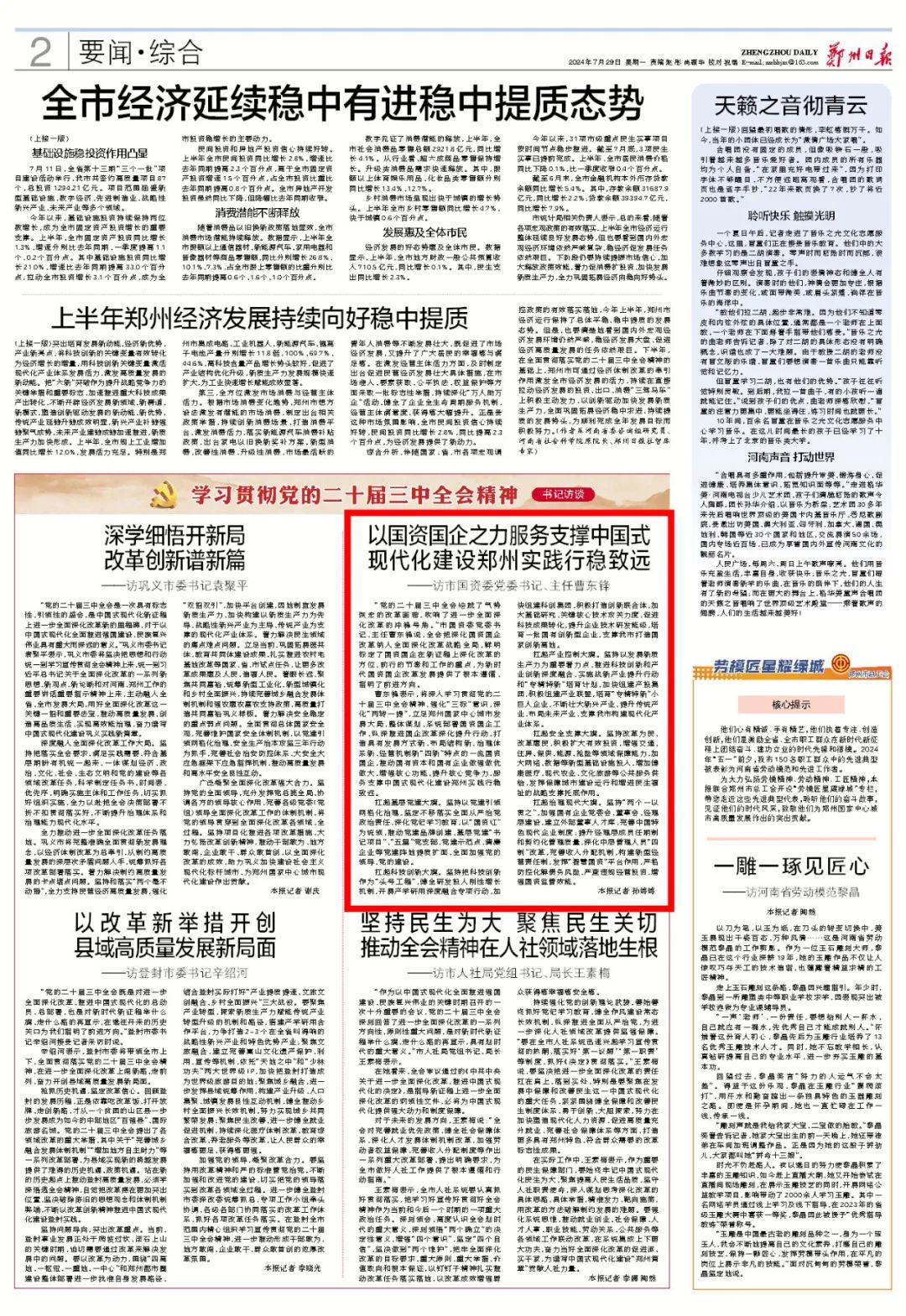 以國資國企之力服務支撐中國式現(xiàn)代化建設鄭州實踐行穩(wěn)致遠