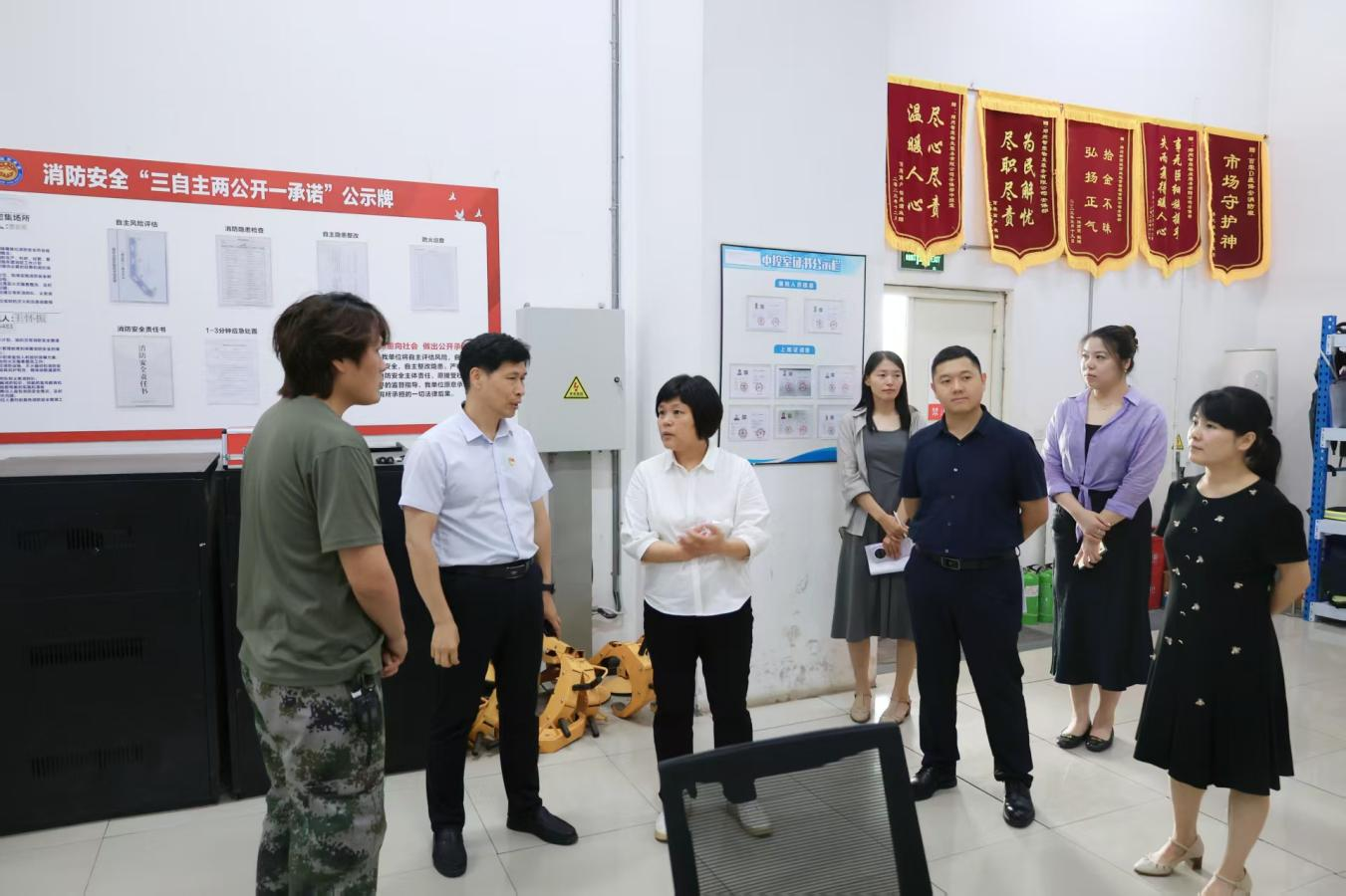 黨委書記、董事長、總經(jīng)理張海燕一行赴百榮世貿(mào)商城D座,針對商城安全設(shè)施運行,風(fēng)險管控及措施落實等關(guān)鍵環(huán)節(jié),重點核查安全主體責(zé)任落實、消防設(shè)備維護(hù)保養(yǎng)情況,實地查看消防中控室、消防通道等重點區(qū)域,并聽取新商城運營公司“安全生產(chǎn)月”活動匯報。針對發(fā)現(xiàn)問題,現(xiàn)場提出整改要求,強調(diào)強化跟蹤督辦,確保整改到位。督導(dǎo)組強調(diào),公司上下要提高思想認(rèn)識,將安全管理置于突出位置,堅決克服麻痹思想和僥幸心理,嚴(yán)格落實主體責(zé)任;同時要持續(xù)提升服務(wù)能力、拓展服務(wù)范圍、提高管理效率,為商城營造更優(yōu)質(zhì)的營商環(huán)境。